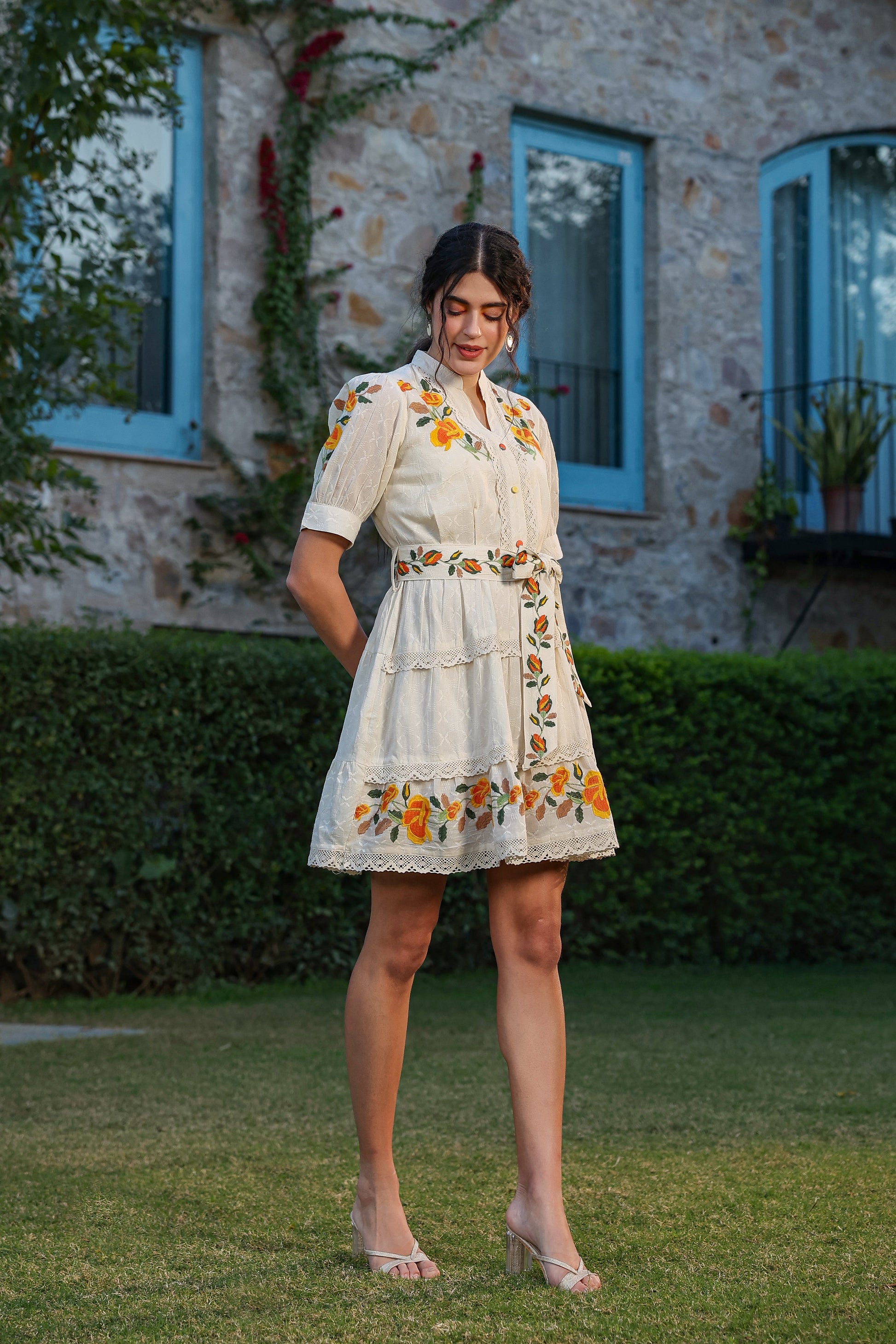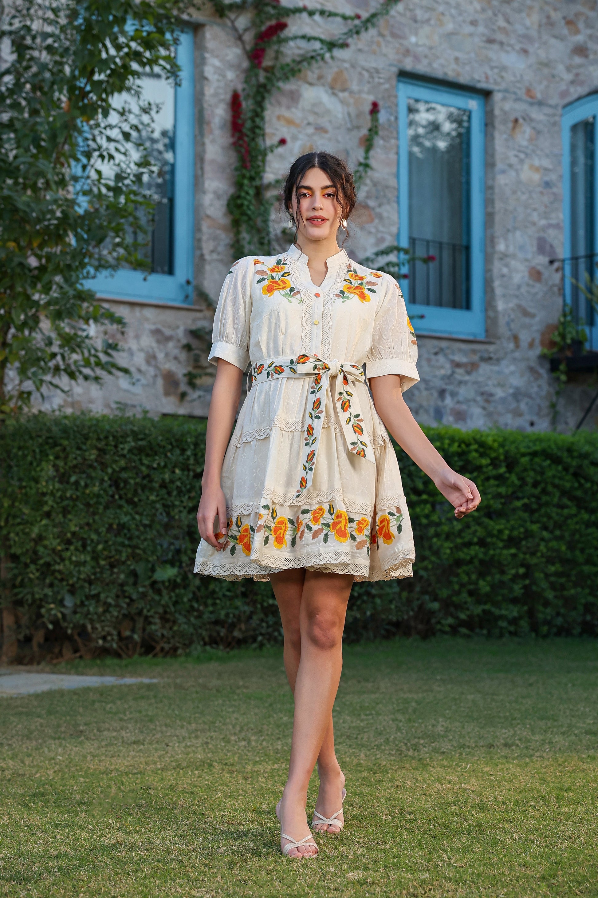 Cream Mal Mal Cotton Stylish Embroidered Tunic