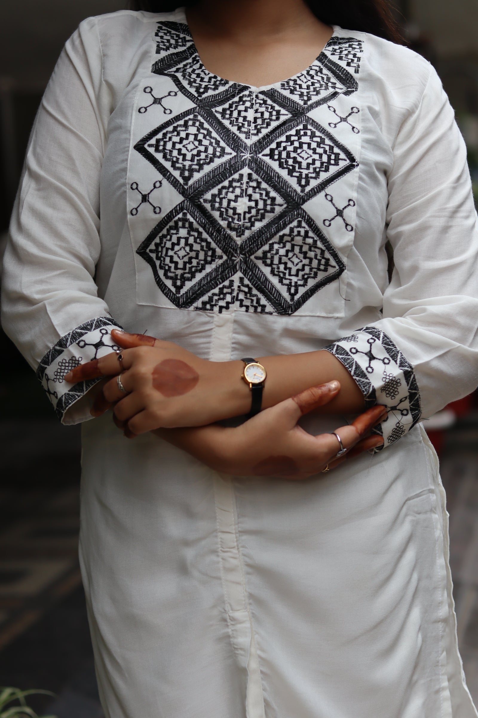White Rayon Cotton Embroidered Co-Ord Set